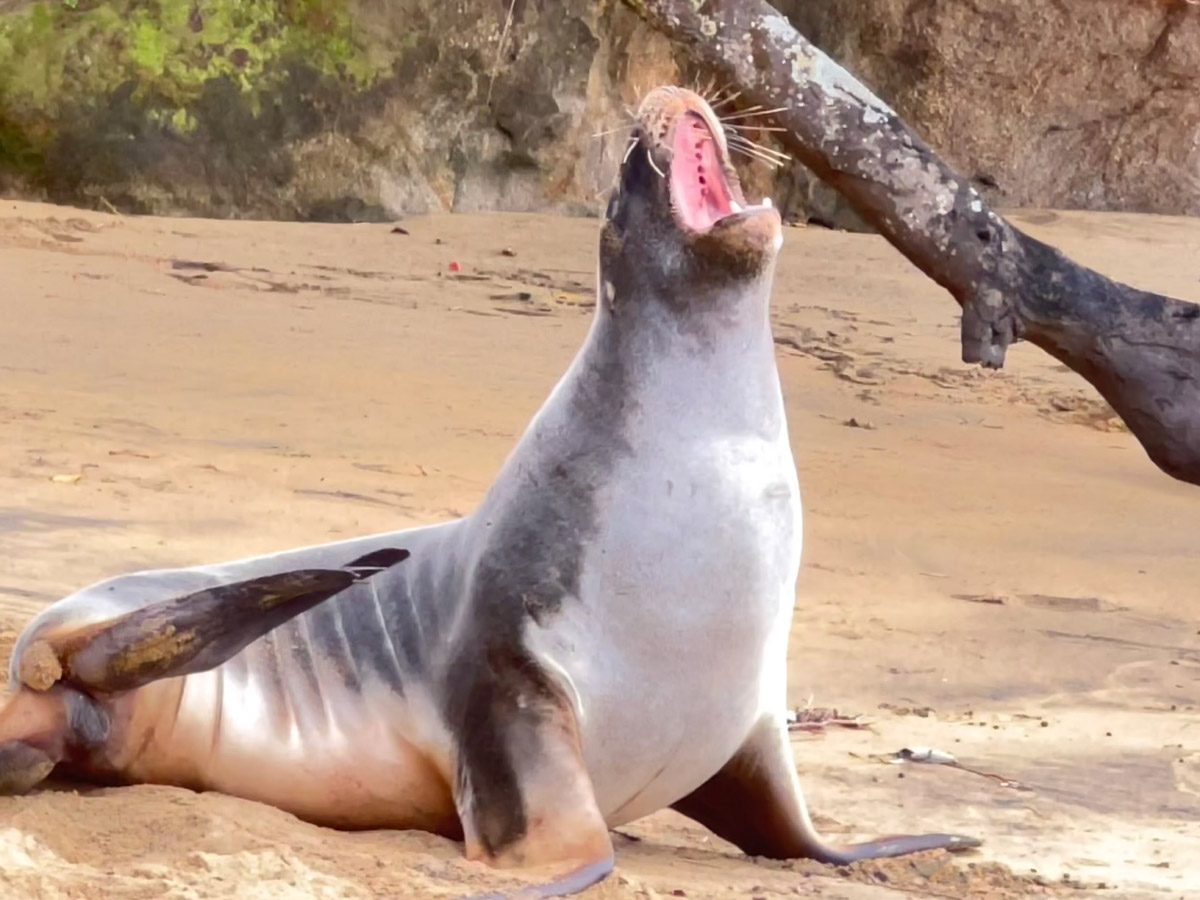 New Zealand Sea Lions are known to prey on a wide range of species including fish, squid, octopus, crustaceans, seabirds and other marine mammals, and even the odd NZ fur seal here and there. New Zealand sea lions are in turn preyed on by great white sharks (aka Jaws), which are also lurking through our waters.