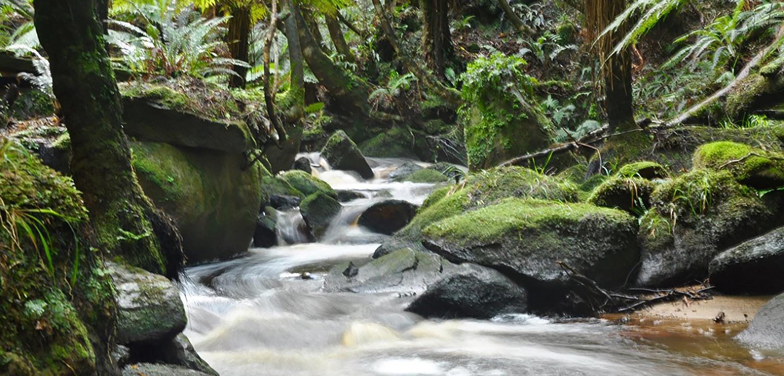 The flora changes from coastal to inland forest with regenerating forest of Rimu, Totara, Miro, Rata, Manuka and Kamahi. Ferns and mosses cover the undergrowth like a green carpet in sections.